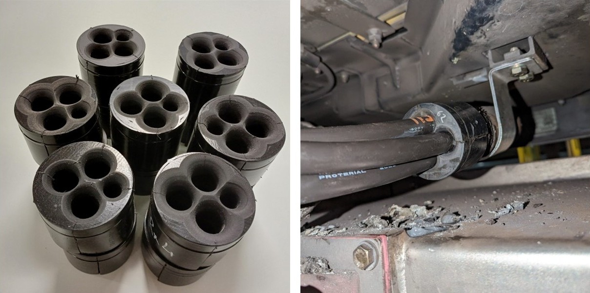 This additive‑manufactured elastomeric component is engineered to protect cable assemblies by preventing chafing against conduits and enclosure surfaces. Produced using Chromatic’s advanced 3D‑printing technology , the part delivers the required flexibility while offering strong resistance to diesel fuel and elevated temperatures.